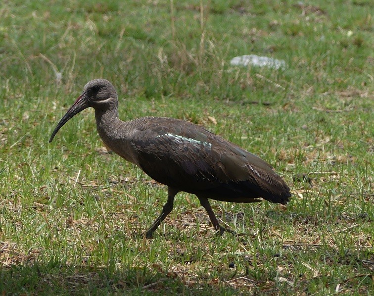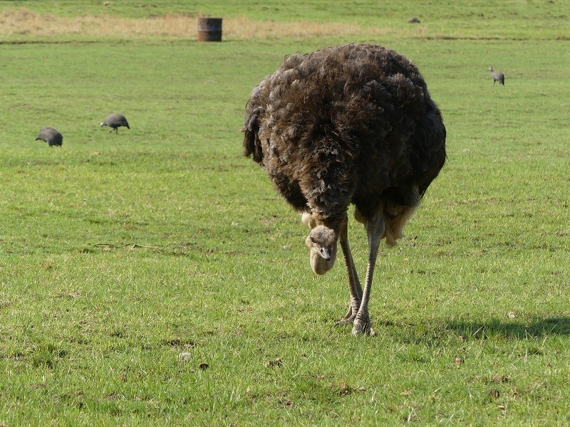 Uitgehongerd gaan we naar het ontbijt. Benieuwd naar wat een Afrikaans ontbijt moet voorstellen. We hebben de keuze uit toast, fruit, yoghurt, worst, bonen, ei en nog een Afrikaans goedje van gehakt met mais, wortel, erwten en aardappel. Het is lekker, maar het brood is niet echt voedzaam. De ontbijtruimte is gelegen op de 1e verdieping met een mooi groot terras waar we regelmatig naar toe lopen om vogeltjes te spotten. Ik zie al een hele bijzondere voorbij komen met een prachtig zwart/wit verenkleed en een knalrode snavel. Hij vliegt over en ik hoop nog een keer een glimp er van mogen op te vangen. Met een volle buik maken we een rondje over het terrein. De zon warmt ons al aardig op en de zomerkleding kan uit de koffer komen. Er zijn overal mooie zitplekken op het terrein in de schaduw waar je goed zicht hebt op alle dieren en vogels. Er lopen twee struisvogels rondt en hoe langer je naar ze kijkt hoe grappiger ze worden. Wat een hilarische beesten zijn het. Ik heb één foto waarop de struisvogel zijn kop laag, recht voor zicht uit heeft. Het is een dikke bol op poten met een kop op een stokje. Ze zeggen dat een nijlpaard een gek dier is, maar ik houd het voorlopig op de struisvogel.