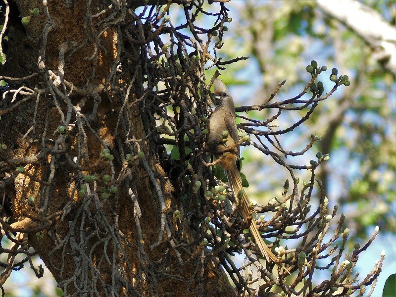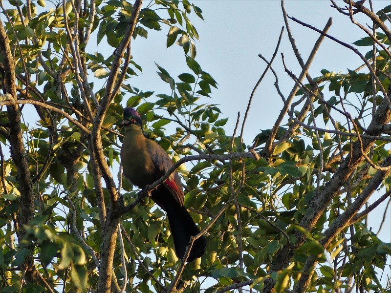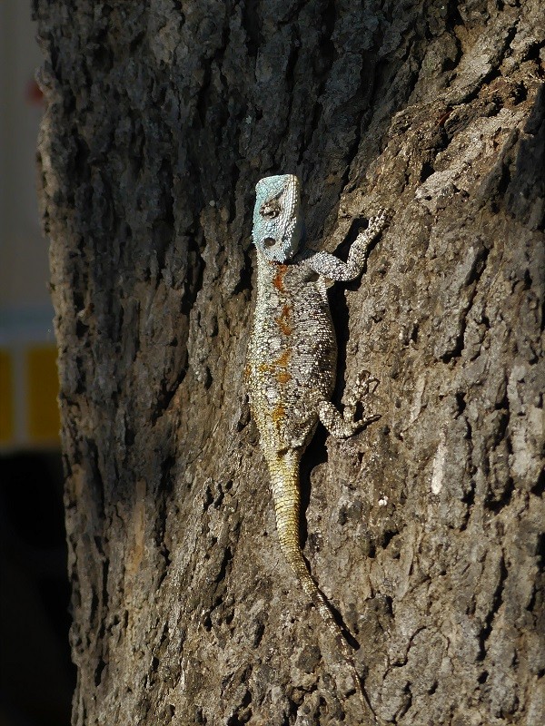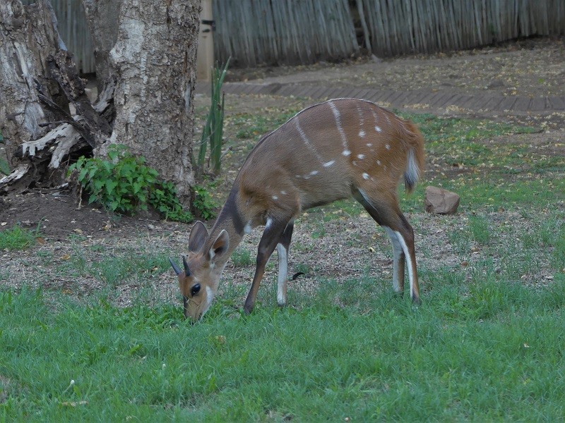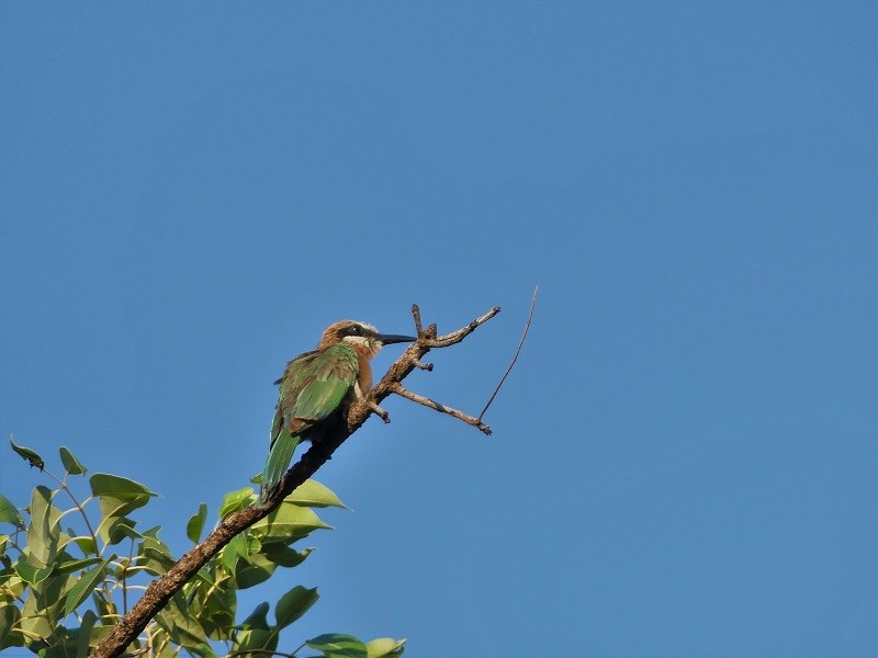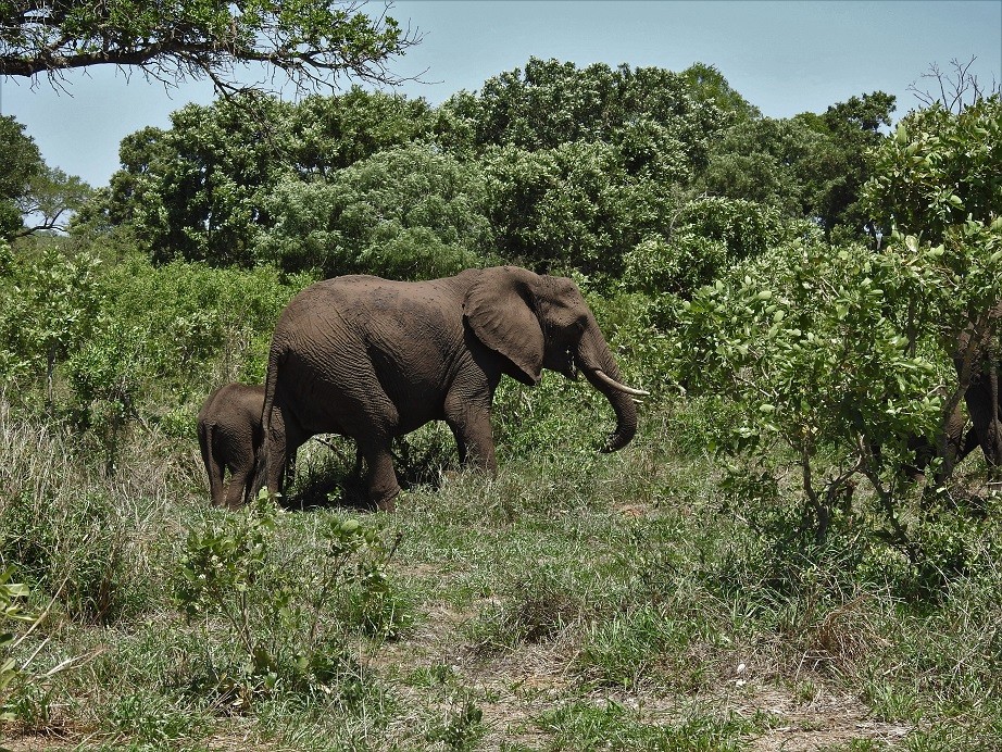 Het ontbijt is pas om zeven uur, maar de beste tijd om buiten te spelen is zo vroeg mogelijk. Voor half zes ben ik dan ook al op pad met camera en verrekijker. Voor het huisje van papa en mama zit een Turako prachtig in het zonnetje. Ik loop verder naar de rivier waar ik ijsvogels over zie vliegen. In de top van de boom zie ik de eerste groene duiven zitten. De vogels zijn vandaag erg actief en in grote aantallen aanwezig. Op de grond zitten hele kleine, gele vogeltjes die snel heen en weer hippen en niet vast te leggen zijn. Ik loop richting de boom waar gisteren alle duiven zaten. De boom zit nu vol met duiven, bijeneters, glansspreeuwen, amethist spreeuwen en muisvogels. Op dat moment komen papa en mama er aan en kunnen nog even genieten van het spektakel. Vijf minuten later zijn alle vogels gevlogen. In anderhalf uur tijd heb ik heel wat vogels kunnen spotten en vast kunnen leggen. Om zeven uur zijn we dan ook erg hongerig en vallen aan bij het buffet. Helaas krijg ik op dat moment last van mijn buik en krijg ik niet zo veel naar binnen. Om half negen gaan we vertrekken naar onze volgende bestemming in het Kruger park, maar als iedereen eerder klaar is vertrekken we ook eerder. Dat werkt natuurlijk niet zo best. De één staat al ruim voor achter uur bij de bus en de laatste pas ruim na acht uur. Om kwart over acht vertrekken we naar Letaba dat 160 kilometer noordelijker is gelegen.